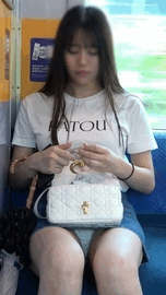 【電車内】清純系JDの白太ももに接近&上から撮影