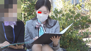 公園パンチラ25 広場で打ち合わせしてる後輩スタッフに声掛けて近付いて見ました