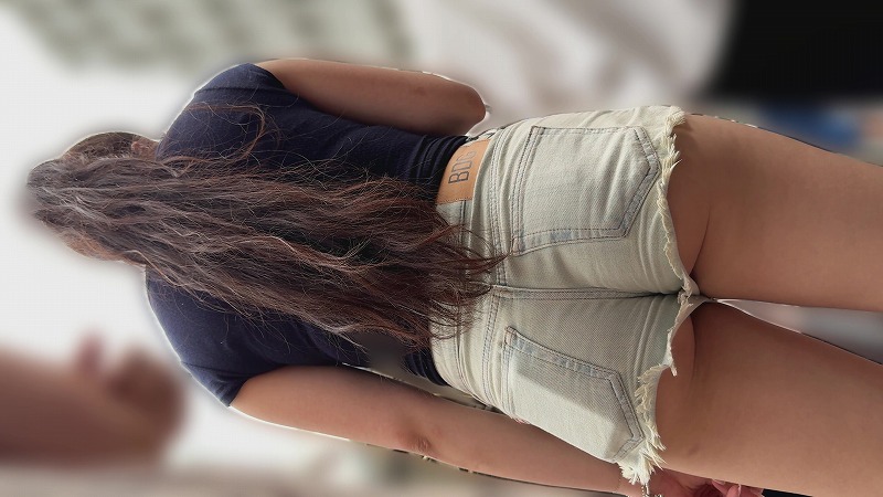 【再販】必見!カットオフパンツからはみ出るお尻とTシャツからはみ出る巨乳(/ω\)